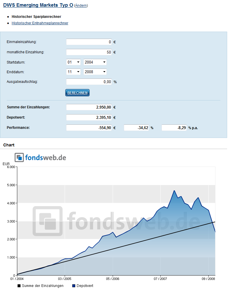 Тот же самый фонд. Другой период. Цена пая выросла, но шпарплан привел к удручающему результату.