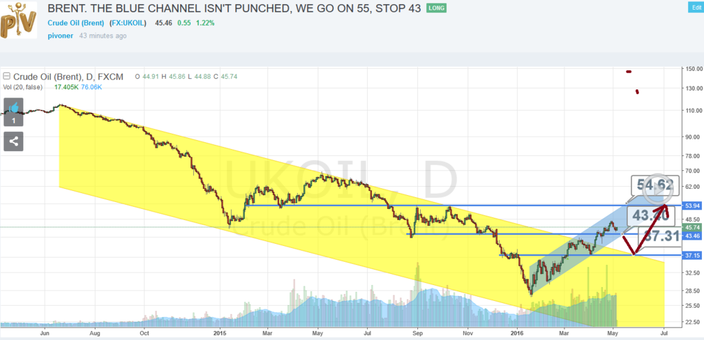тем более я не исключаю падения до гдето 37, но пока молодой тренд развивается в восходящем канале цель 55 вполне реальна, при выпадании из канала может начатся затяжная бокавуха, но цель 55 всeже остаeтся, просто с небольшой задержкой (могу нарисовать)