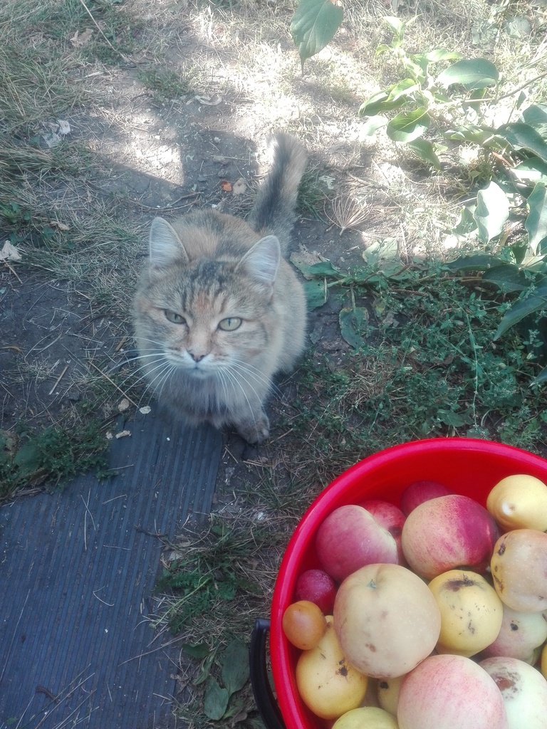 Кошечка ещё регулярно приходит за ветчиною и трётся и урчит по звериному ![]()