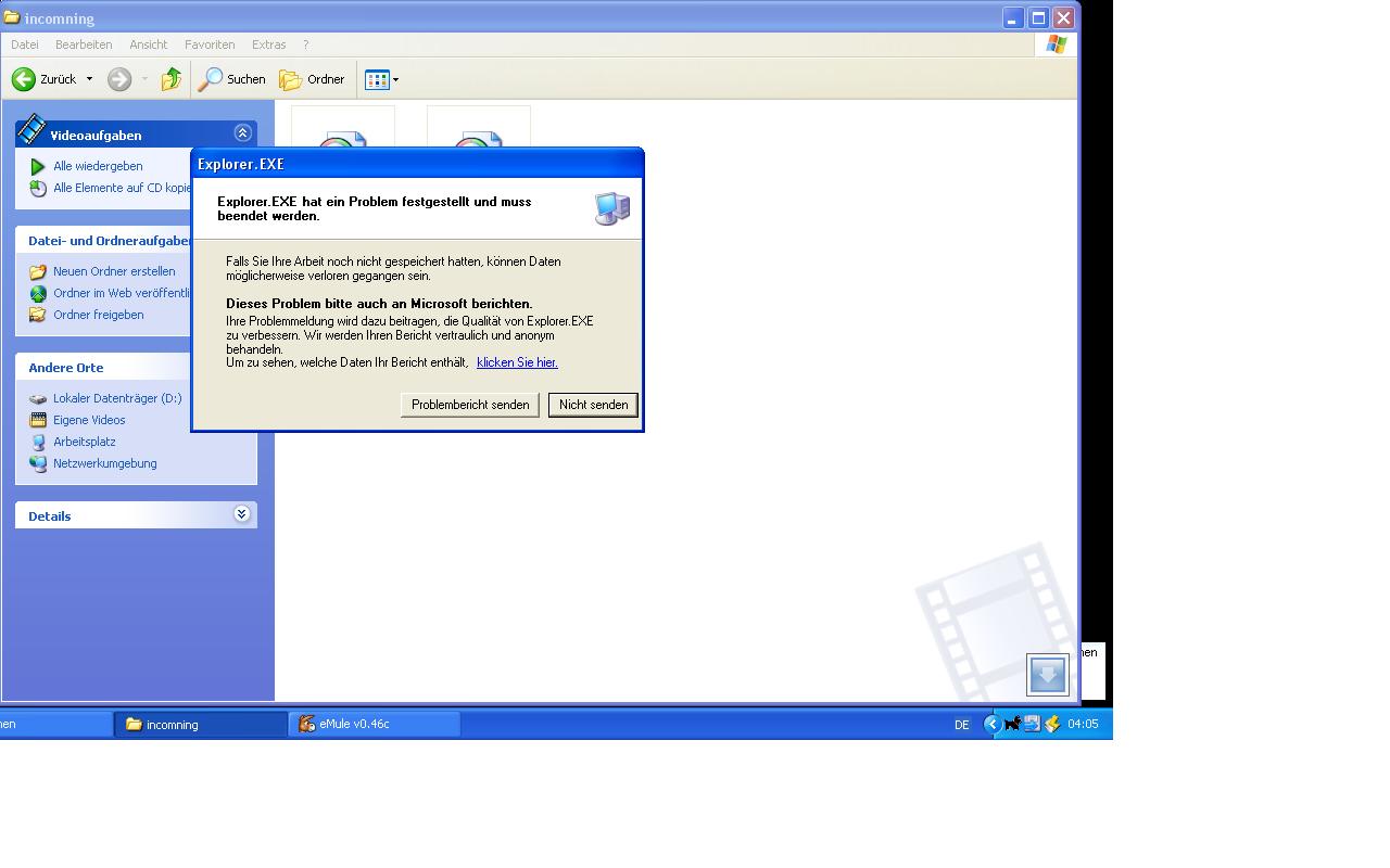 Проблема с Emule! При попытке открыть папку в которую скидываются все входящие файлы Emule исчезает также как и некоторые другие программы,в том числе и Trojanerchek. Я для начала сделал следующее: Сначала порвал осла,затем удалил папку Incomning со всеми файлами.После чего инсталлировал ослину заново и создал новую папку Incomning,но при открытии папки все пропадает и появляется сообщение об ошибке.У меня практически нет возможности пользоваться теми файлами,которые я закачиваю.Возможно ли,что я скачал какой нибудь инфицированный файл? Подскажите пожалуйста что делать!