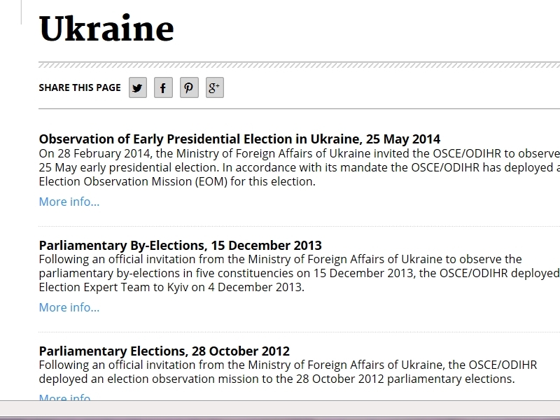 Я вот сейчас на сайте ОБСЕ задаю в поисковике: наблюдатели ОБСЕ на Украине...
