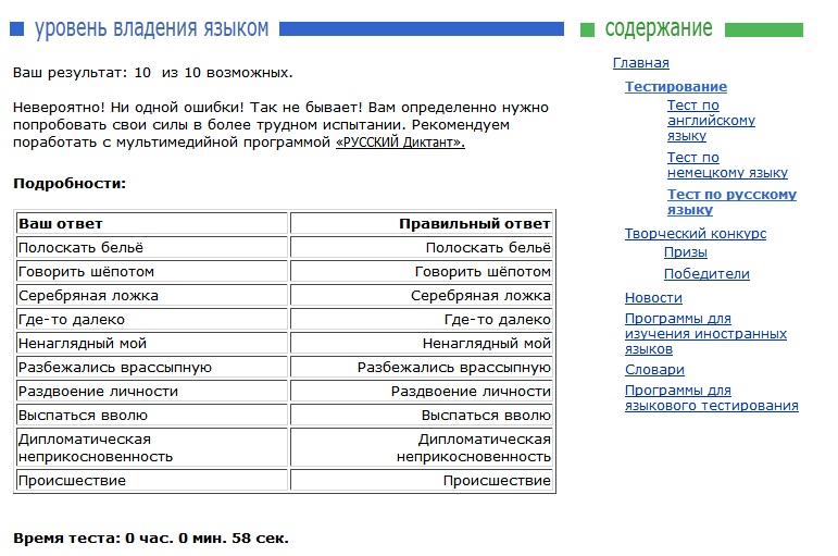 но второй раз Ваш результат: 10 из 10 возможных. уфф.. 45 сек