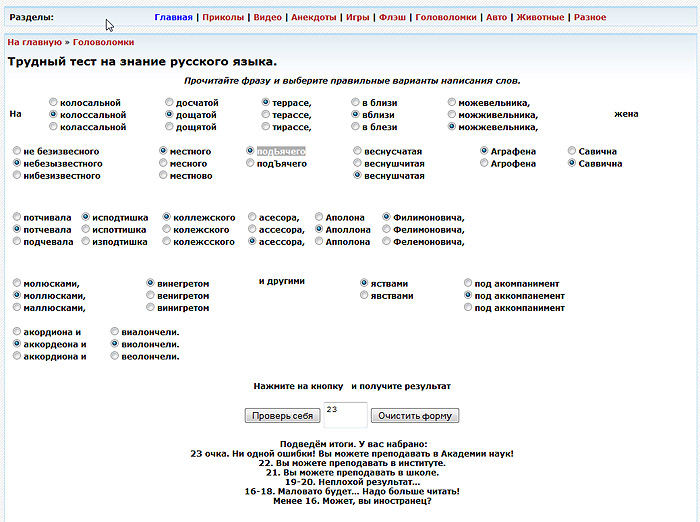 23 очка. Ни одной ошибки! Вы можете преподавать в Академии наук!