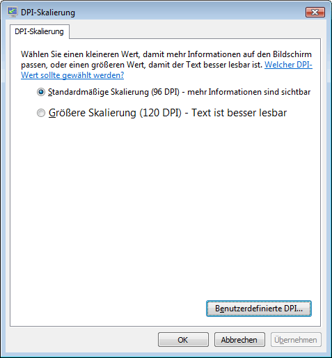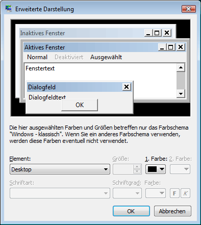 Systemsteuerung=>Darstellung und Anpassung=>Анпассен