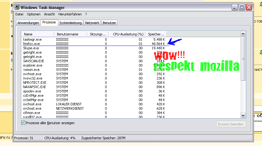 вы извеняйте пацаны, но IE при всей его "глючности" больше 30 МВ не занимал никогда.