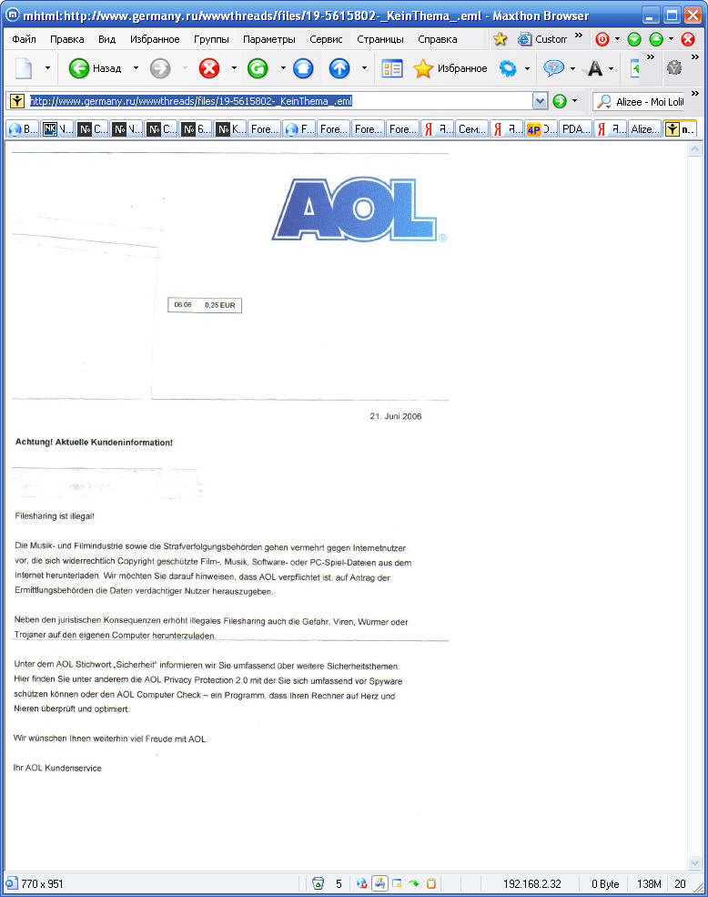 клиент АОL получил предупреждение...