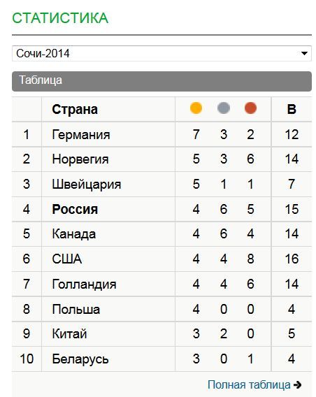 Сочи 2014 Результаты