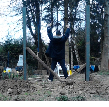 Сегодня зашли два немца-пенсионера-соседа. Один строитель, другой профи дачник. Строитель сказал, что ямы узкие. Для такого (ТАКОГО) веса нужно шире ямы и больше бетона, тк сам вес будет себя расшатывать с качаюшимися. Вот работка. Придётся окапывать не вынимая. ППц. и посоветовал побольше арматуры, опять же изза веса.