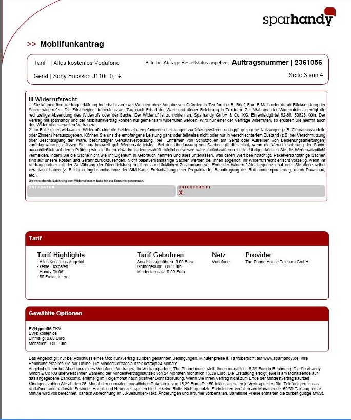 Angebot gilt nur bei Abschluss eines Vodafone- Vertrages. Ihr Vertragspartner, The Phonehouse, stellt Ihnen monatlich 15,39 Euro in Rechnung. Die Sparhandy