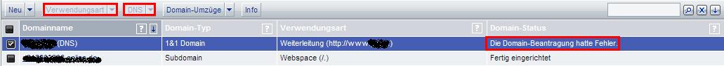 Die Domain-Beantragung hatte Fehler.