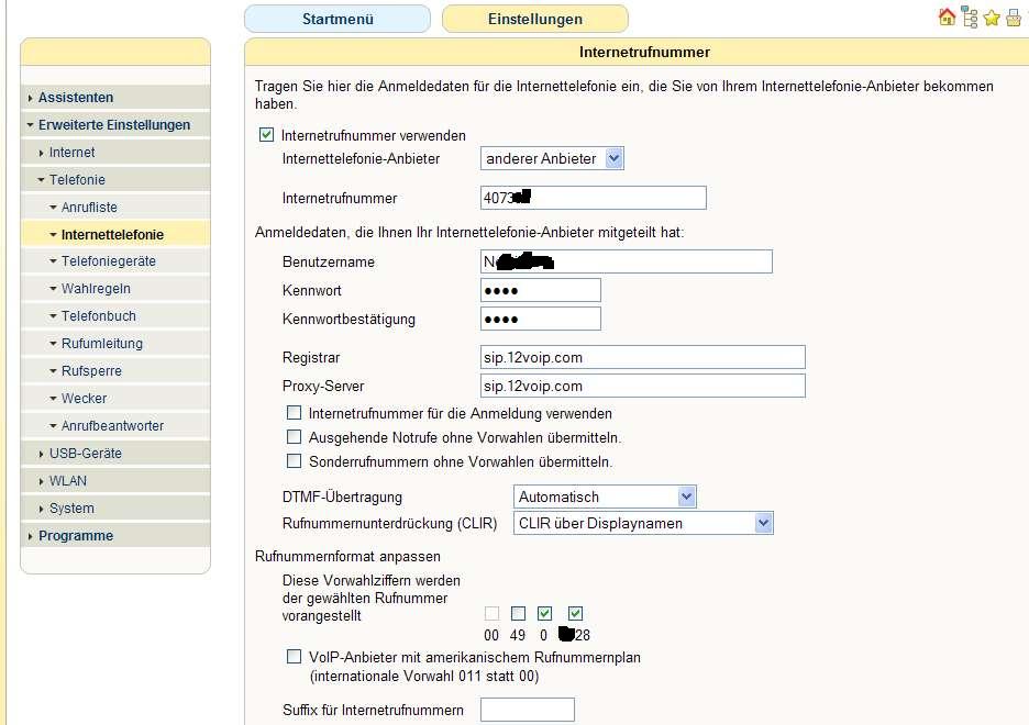 Инструменты - настройки - Call Settings - Phone-to-Phone, там в окошке укажите свой домашний телефон (в международном формате: 0049...)