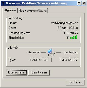 Деактивированным останется пока снова не активируешь. Зелёный значёк у меня это мощность сигнала, у меня беспроводное соединение с рутером, насчёт пакетов и байтов, это должно где то переключаться, но вот где не помню