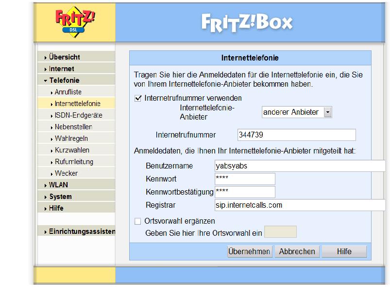 фритц спрашивает вначале интернет номер,а как сделат без него?