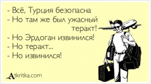 Мы живём в ФРГ, границы проходим по аусвайсам, летаем из немецких аэропортов немецкими, ирландскими или турецкими авиалиниями, туры покупаем как правило тоже здесь (Тюркис- райзе в Кёльне ни на день не прекращал продавать туры в Турцию, а мой сосед имеет два дома у моря в Анталии, много лет зовёт в гости за малую стоимость- чур меня, ни дай бог уговорит-).