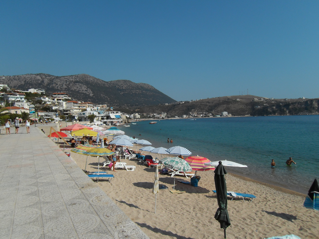 Албания, центральный пляж в Химара. Хочу заметить, цена на мобильный интернет смешные. где-то 7 евро платили за 3ГБ. Много итальянцев живут. У них свои кафушки и магазницы с тряпками. Вще есть недорогие, модные. Всегда покупаем, когда едем. В Черногории в г. Никшич прикупиться можно неплохо. Обуви модной много продают.