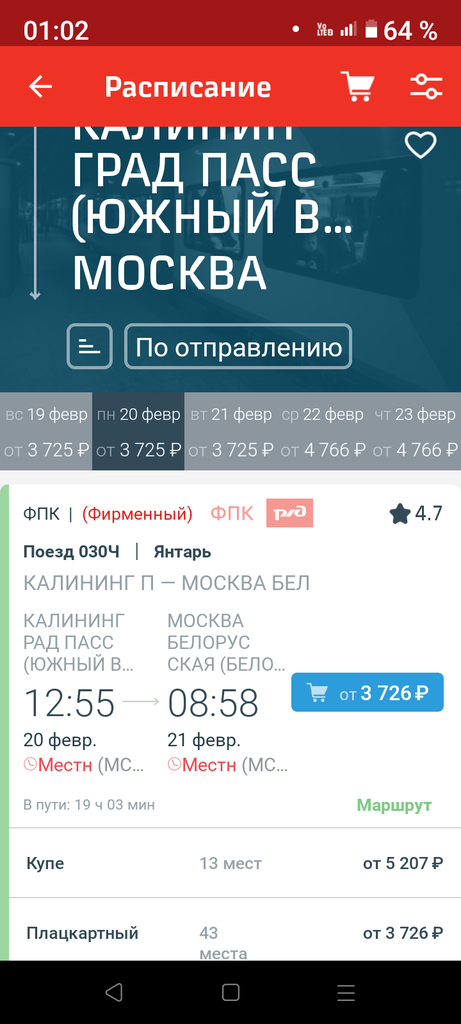 отправление из Берлина в 19 часов в Калинграде в 08 ч30 м