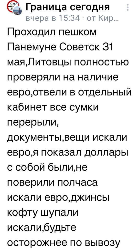 Литовские пограничники выборочно досконально. проводят проверки ,проверяют валюту Евро