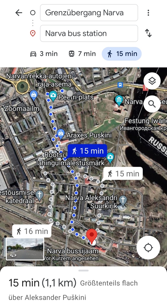 Скажите пожалуйста, а как долго идти от границы до автовокзала? И где вы покупали билет на автобус нарва-таллинн?