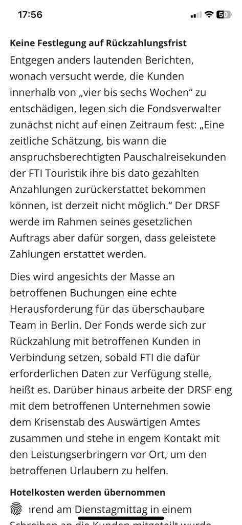 Вот тут ответы на большинство вопросов по FTI Reise https://drsf.reise/fragen-und-antworten-zur-insolvenz-der-...