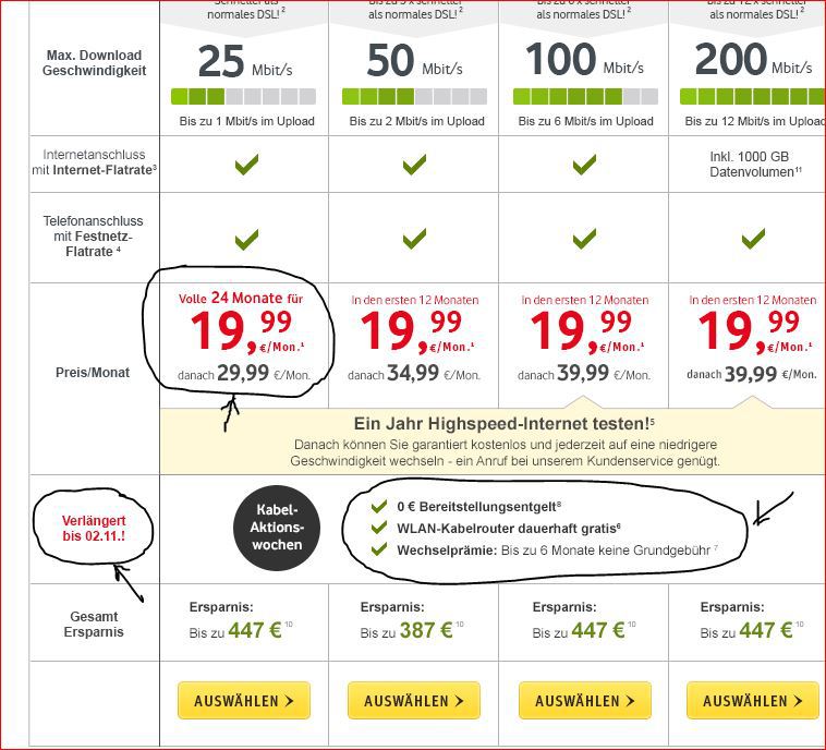 То, как я предлагал это: 19.99 (через 2 года 29,99) за кабельаншлус интернет + телефон + 35 в год за 400 до 500 русских каналов, выбор за вами.