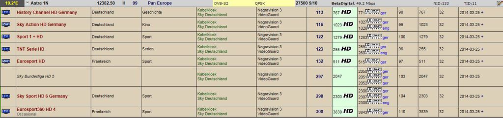 Сотни программ Sky Germany уже не доступны в старой системе кодирования Nagra МА.В ближайшее время программное предложение Sky Deutschland будет доступно только на сет топ боксах оператора через систему кодирования Videoguard (CAID 098C/09C4), которую используют платформы в Великобритании (Sky UK) и Италии (Sky Italia).
