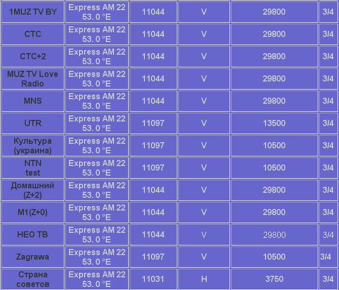 http://www.teresenko.h12.ru/tabl2.htm Каналы все тут. А насколько интересные...трудно сказать, кому как.
