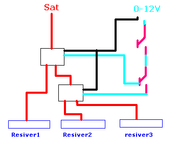 Такие варианты.обычно, не делаются.Как поведут себя ресиверы,выходы которых просто соеденены паралельно - трудно предсказать.Ведь это дополнительная нагрузка для блока питания.Два ресивера должны работать(до сих пор работают)-опыт был.Подключение третьего ресивера увеличивает нагрузку для работающего ресивера.К тому же ещ╦ переключается поляризация - 14/18 В.В худшем случае - выгорит цепь питания LNB в ресивере.