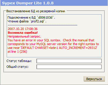 дома на апаче через mysql dumper попробовал загрузить, вот что он мне выдал: