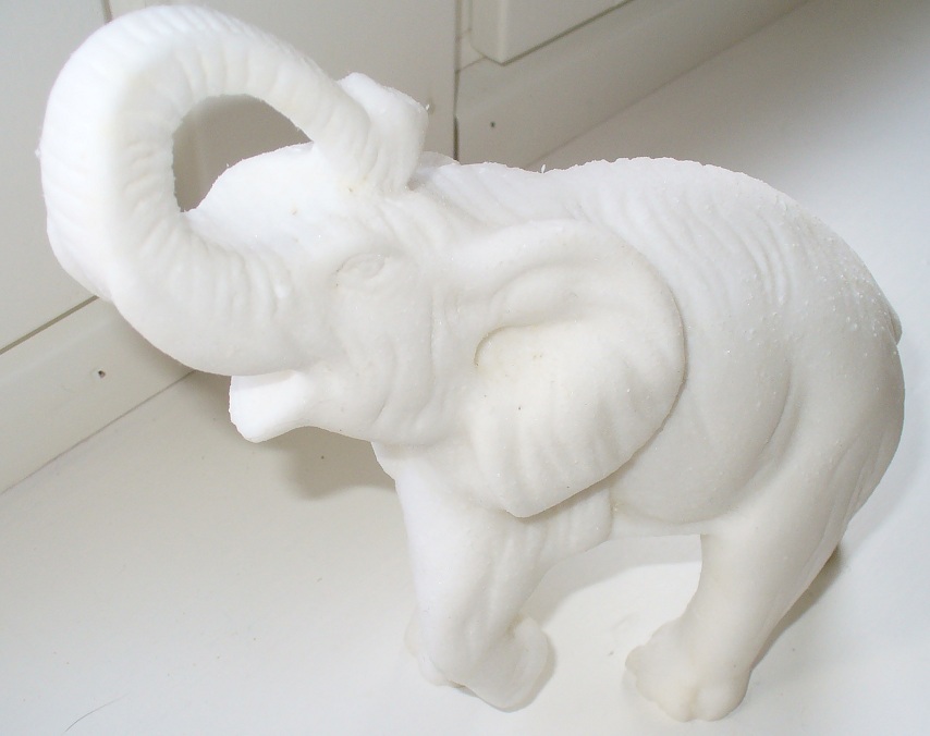 Купила на фломаркте фигурку слоника, хотела сполоснуть его естественно с мылом, а с него будто кожа начала сходить. Кто знает, что это может быть за материал? Выглядит как камень, когда стучишь по нему, то звук пустой, на ощупь шершавый стал после мытья, до этого был вроде гладкий. Да, на животе начал уже от воды крошиться немного.